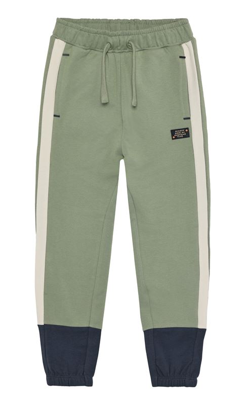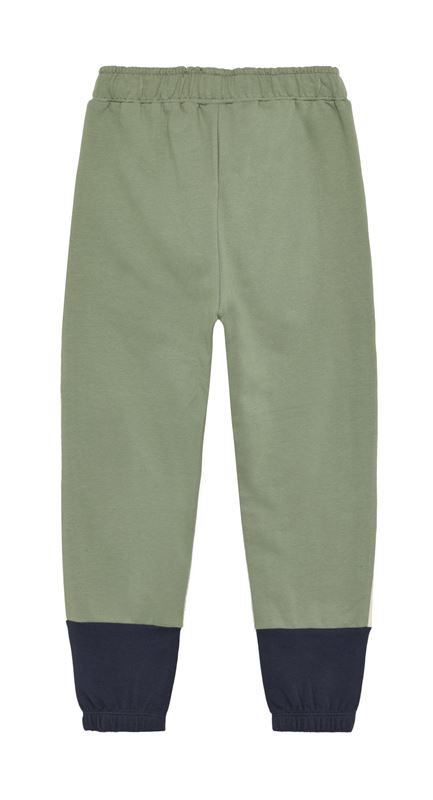 Joggingbyxor från Minymo i en härlig grön med detaljer i blått och vitt(varm ton).