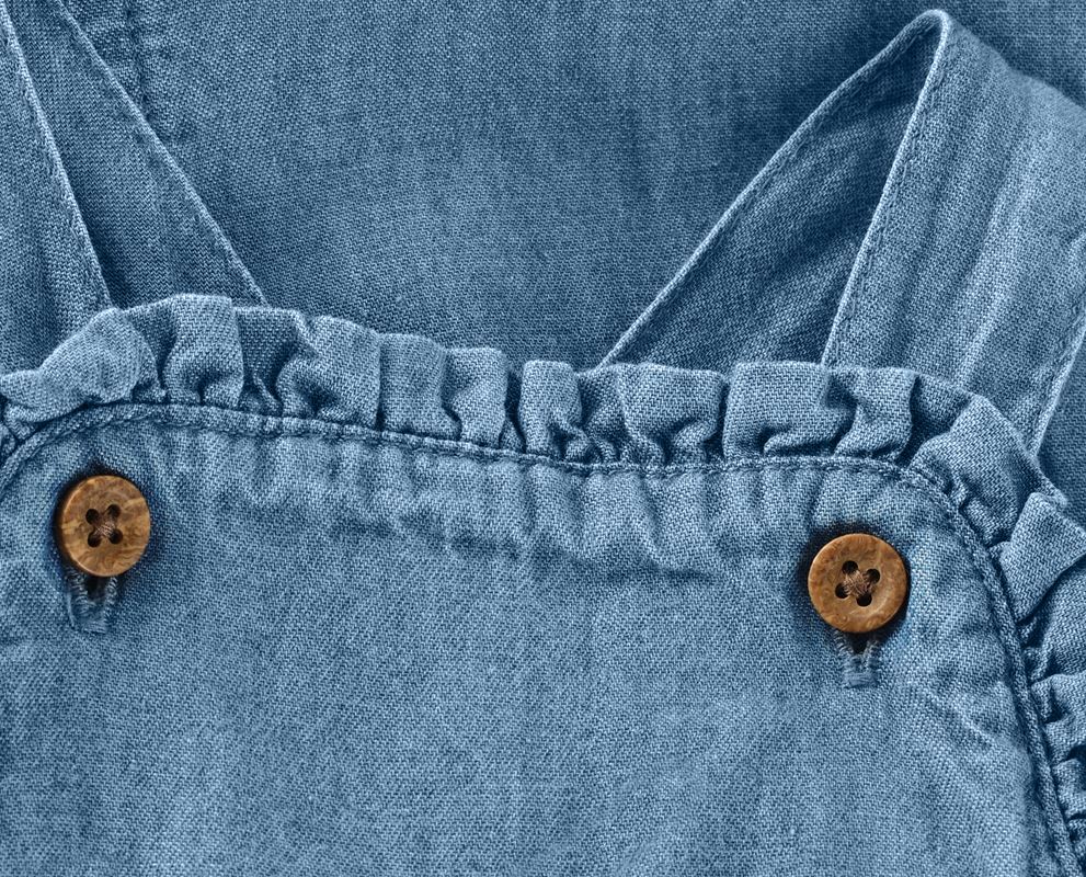 Mjuka Hängslebyxor 62-80 Blåa Med Volang