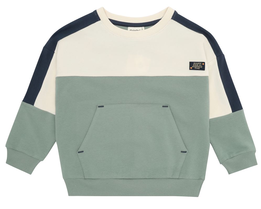 Sweatshirt från Minymo i en härlig grön med detaljer i blått och vitt(varm vit).